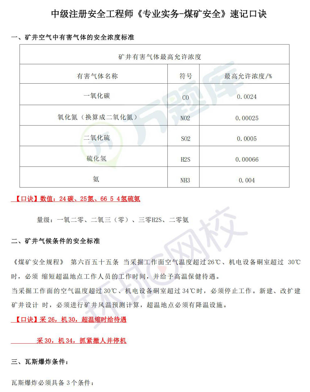 2026年中级注安《煤矿安全》速记口诀
