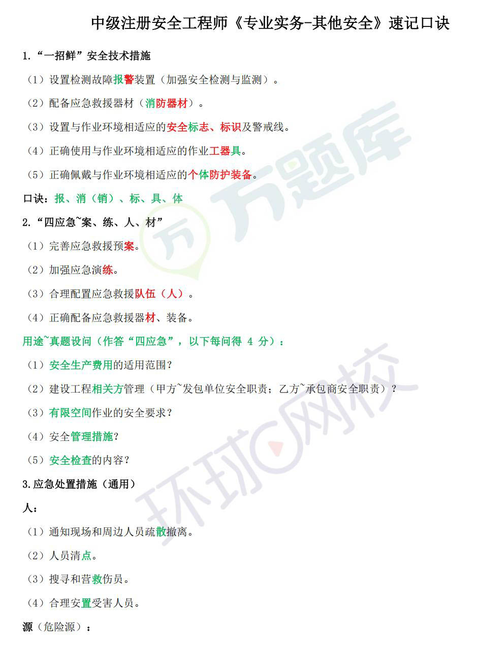 2026年中级注安《其他安全》速记口诀