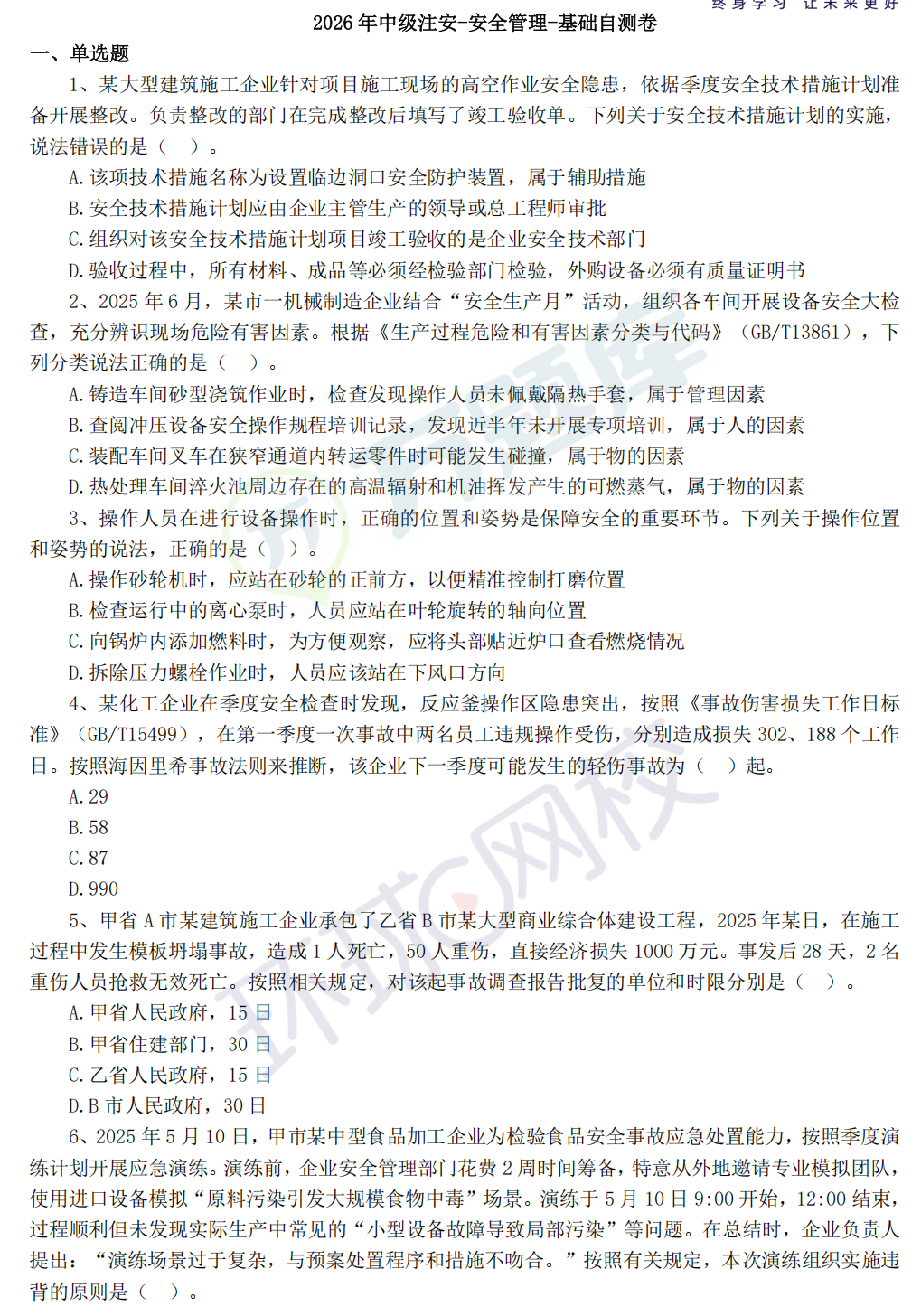 2026年中级注安-安全生产管理-基础自测卷