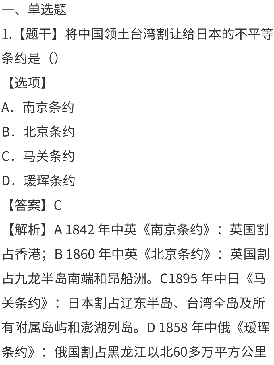2026年4月《近现代史》真题及答案(持续更新)