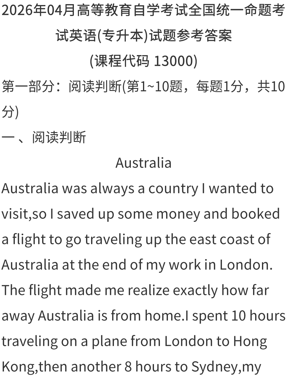 完整版2026年4月自考英语(专升本)真题答案