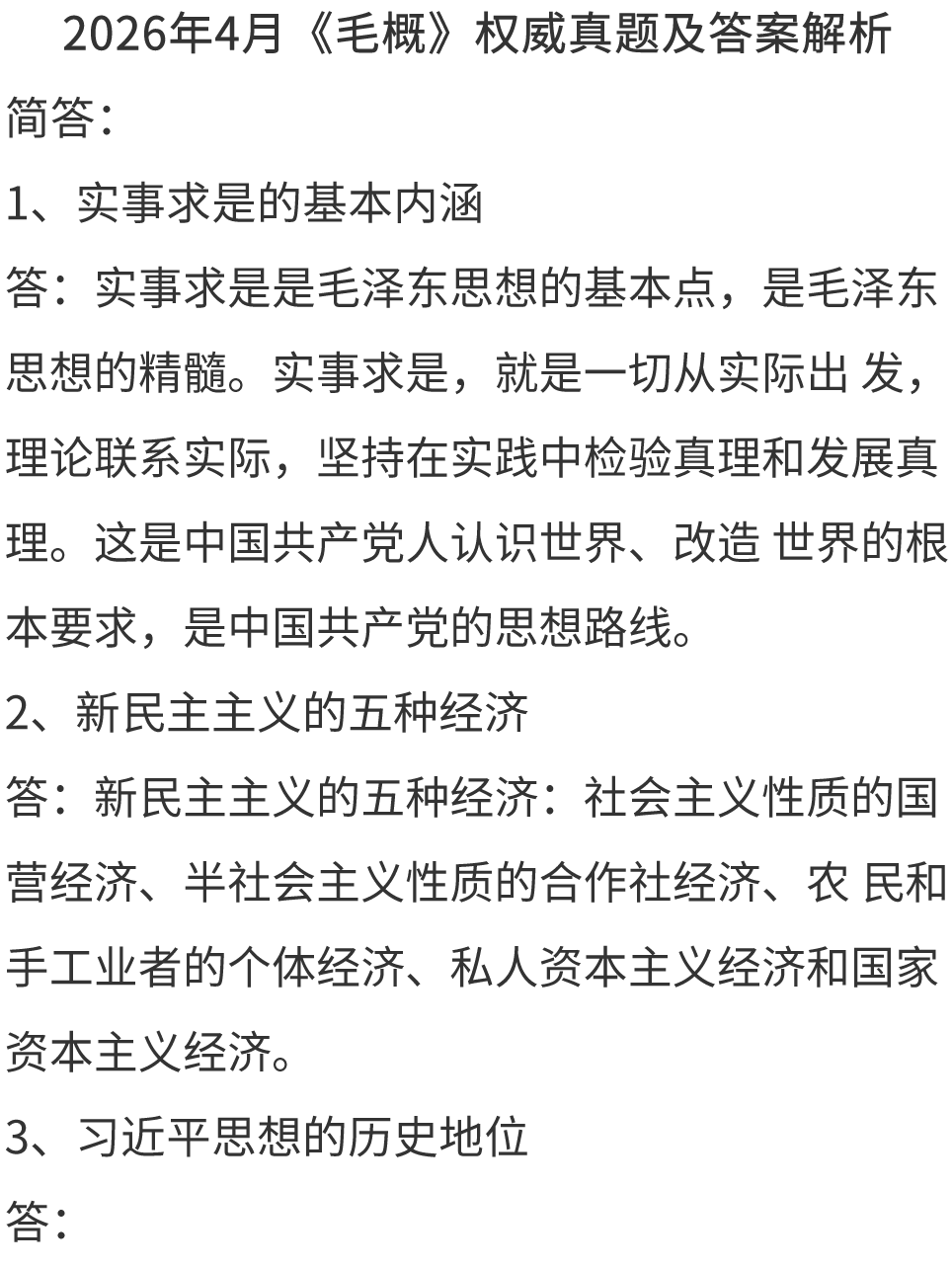2026年4月《毛概》真题及答案(持续更新)