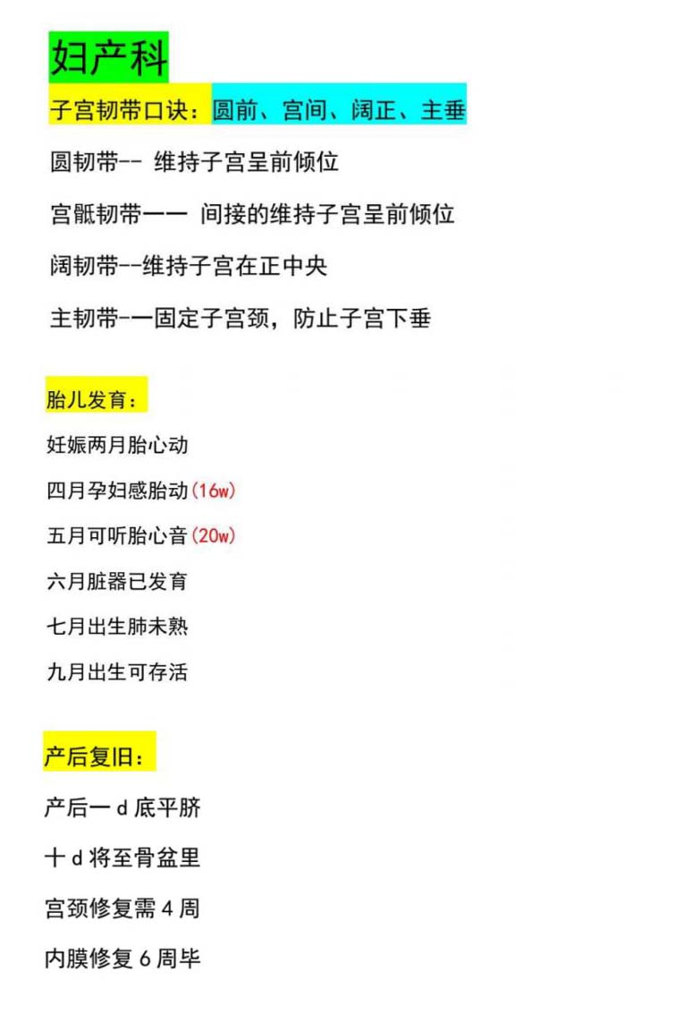 初级护师重点口诀背诵-妇产科护理学