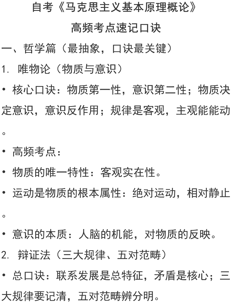 2026自考《马原 》高频考点速记口诀