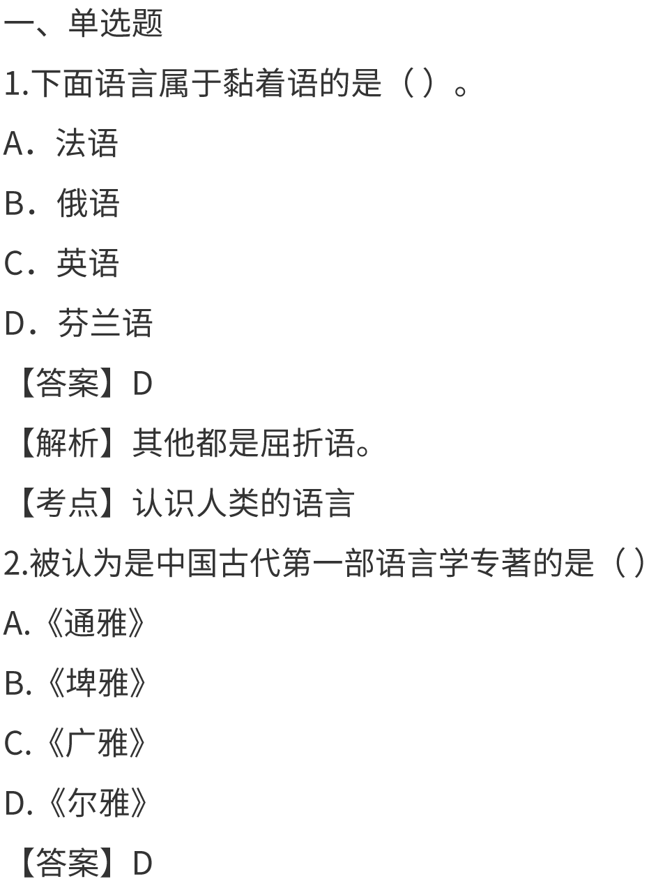2023年10月《语言学概论》真题答案出炉!