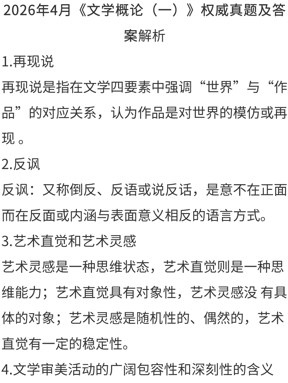 2026年4月《文学概论一》真题及答案(持续更新)