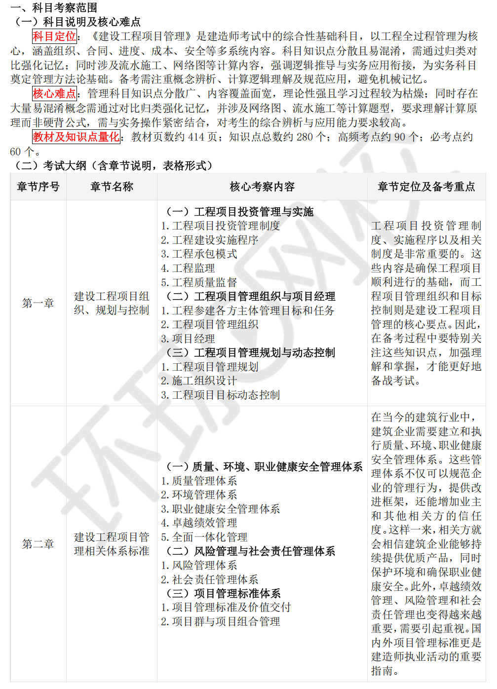 2026年一级建造师《项目管理》难度说明