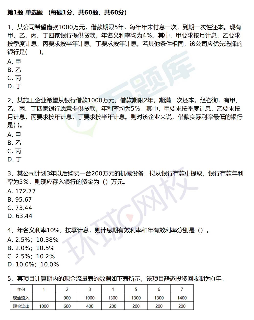 一级建造师《工程经济》计算题专项训练