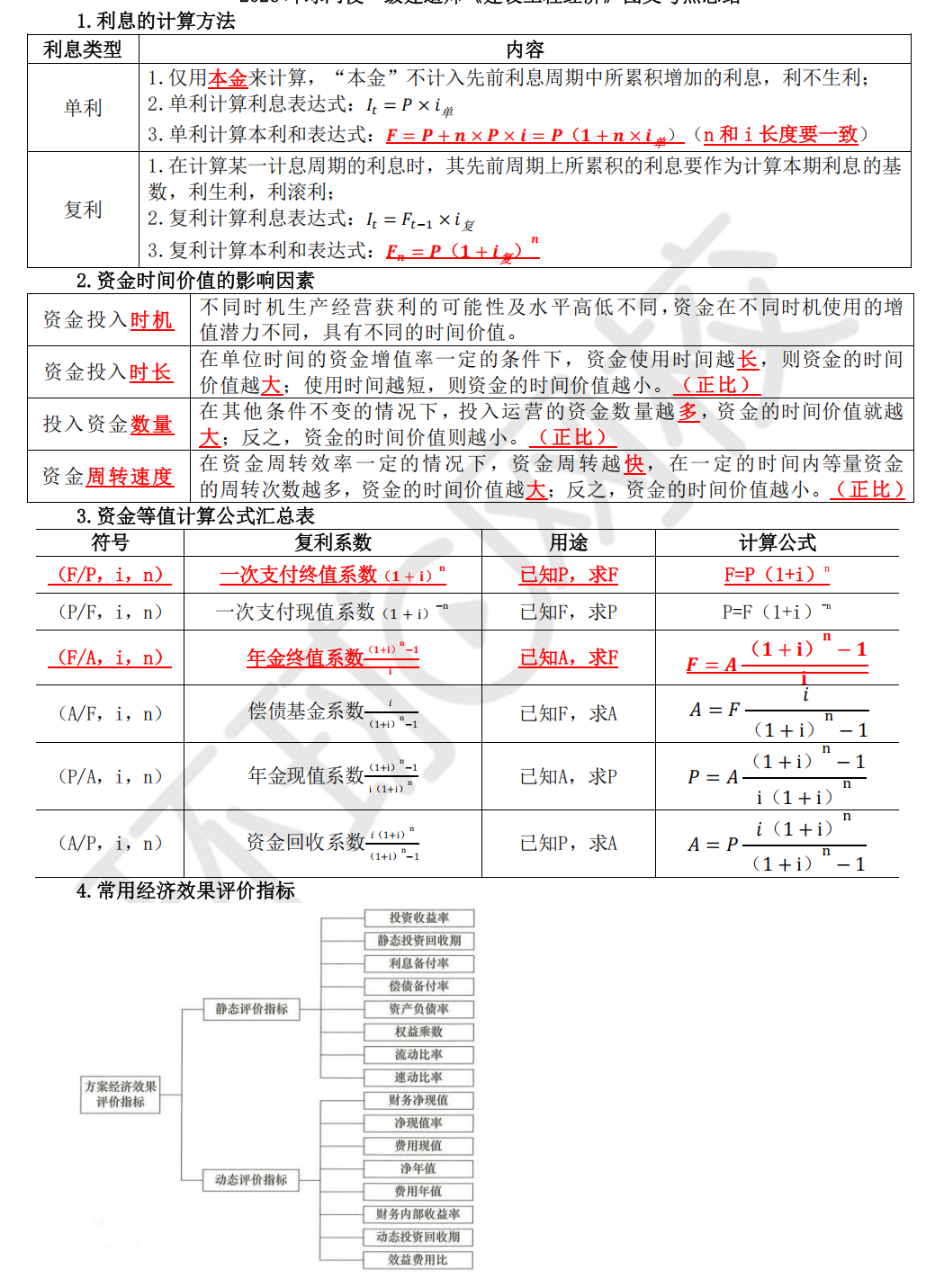 一建考试《工程经济》必背三色笔记
