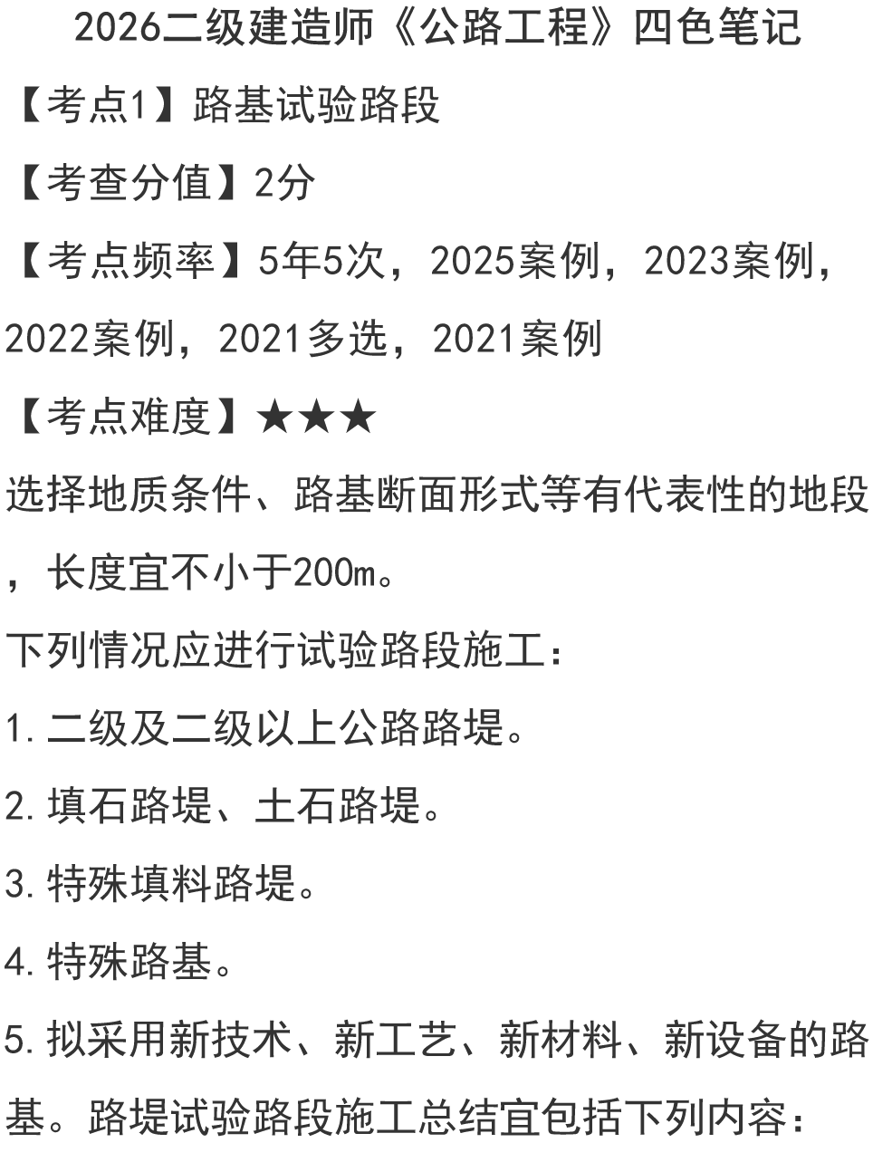 2026二建《公路工程》四色笔记