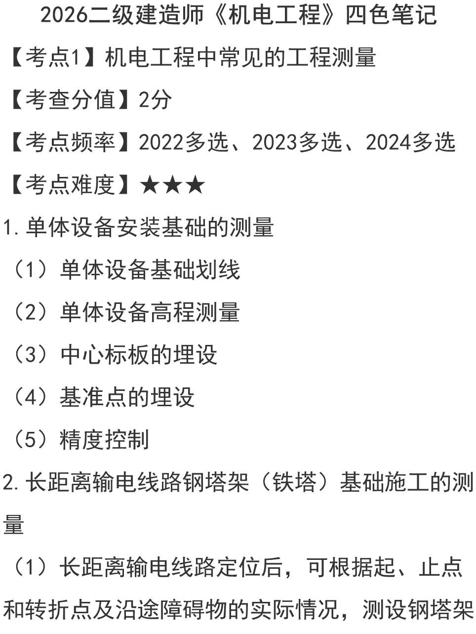 2026二建《机电工程》四色笔记