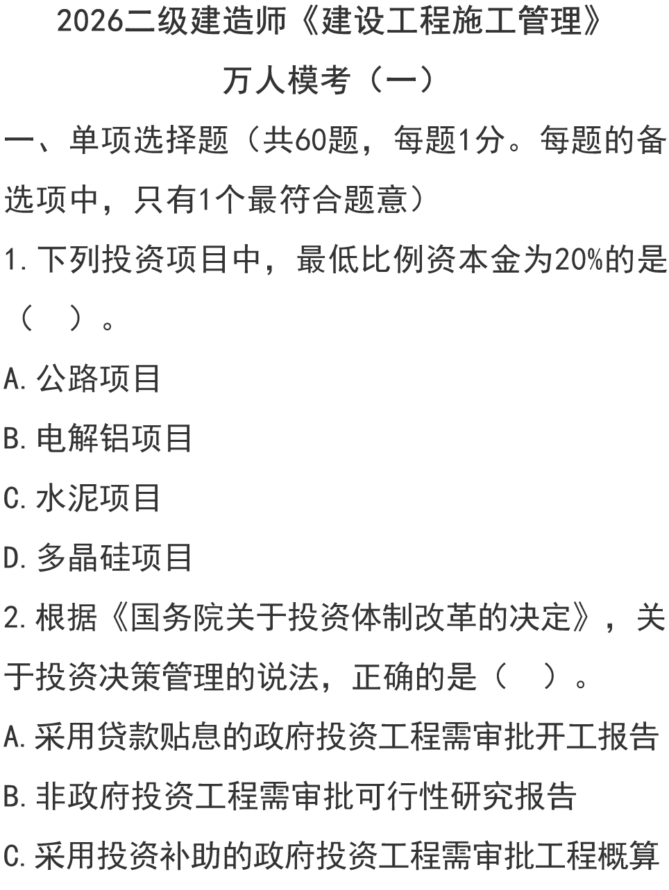 2026二建《施工管理》万人模考卷(一)