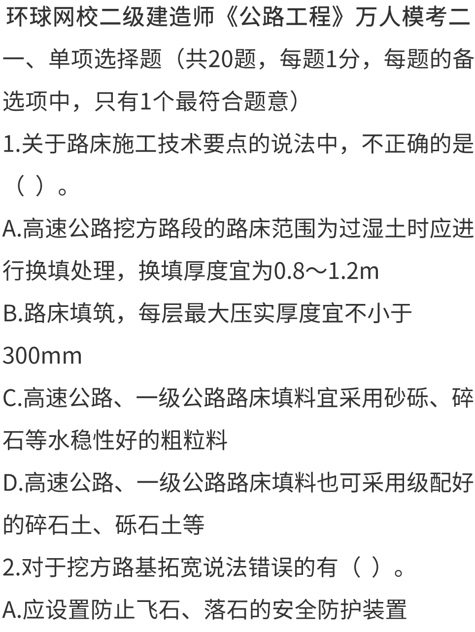 2026二建《公路工程》万人模考卷(一)