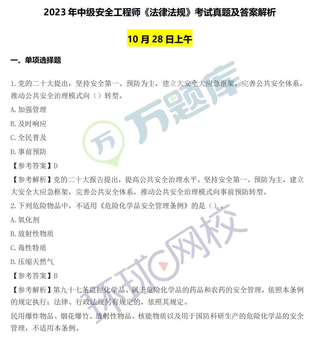 2025中级注安《法律法规》真题及答案(全)
