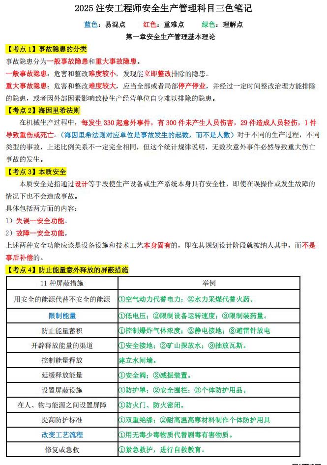 速背!中级注安《生产管理》必背三色笔记