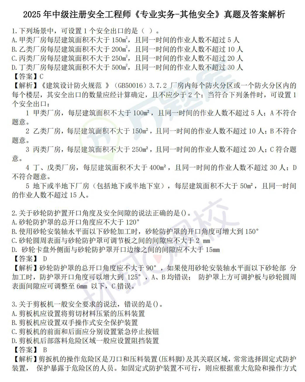 2025年注安《专业实务-其他安全》真题答案