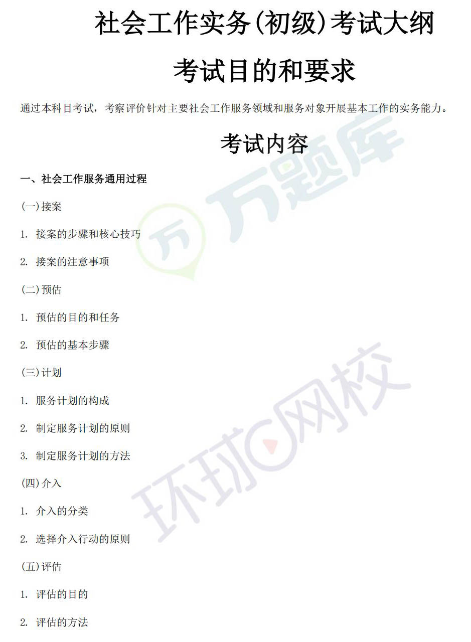 2026年初级社会工作者《工作实务》考试大纲