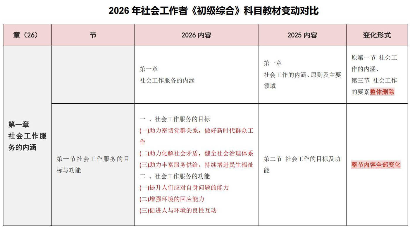 2026年初级社会工作者《综合》教材变动对比
