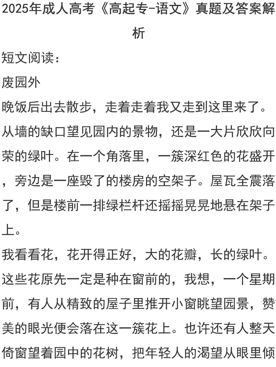 2025成人高考《高起专-语文》真题及答案(持续更新)