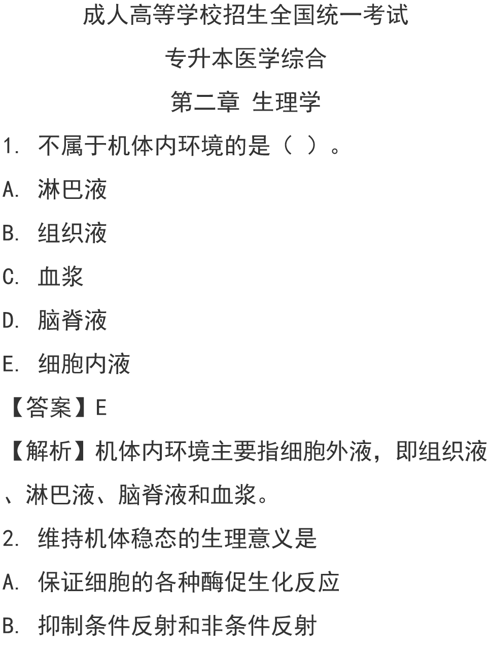 2026成人高考【医学综合】预测50题
