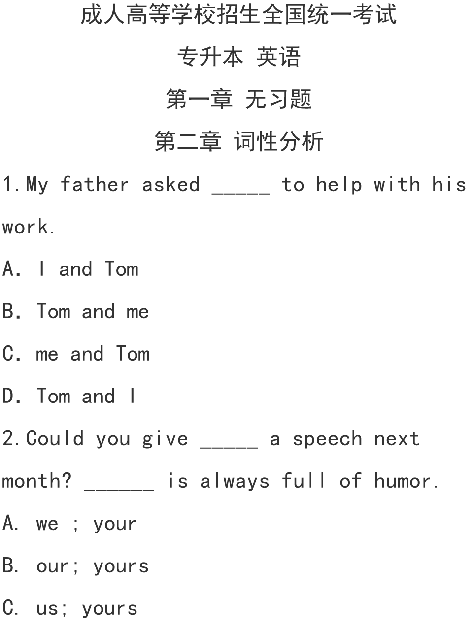 2025成人高考《专升本-英语》真题及答案(持续更新)
