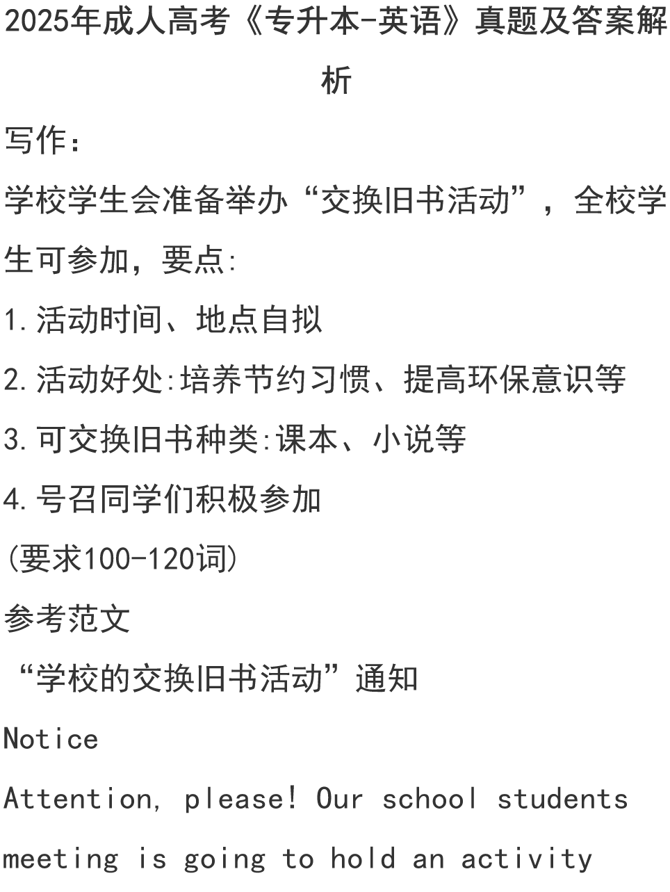 2025成人高考《专升本-英语》真题及答案(持续更新)