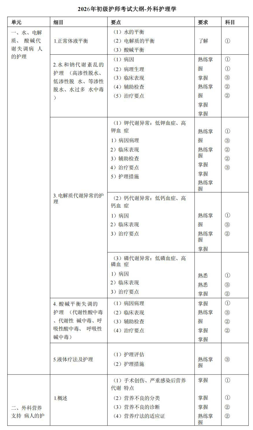2026年初级护师考试大纲-外科护理学
