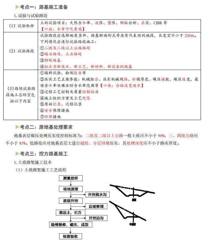 一建考试《公路工程》必背三色笔记