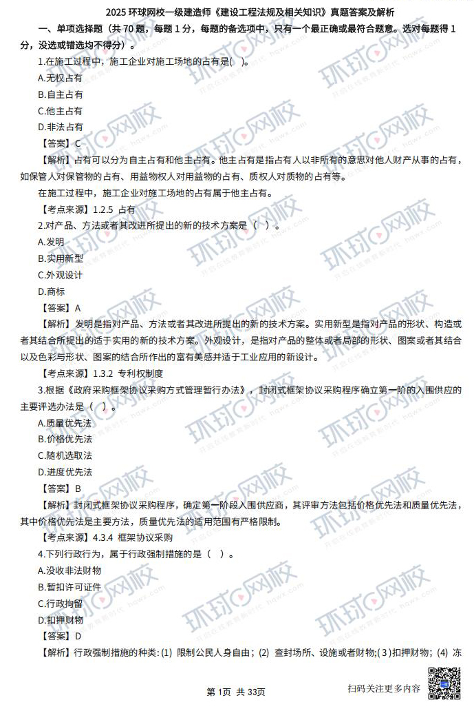 2025年一建【工程法规】真题及答案(全)