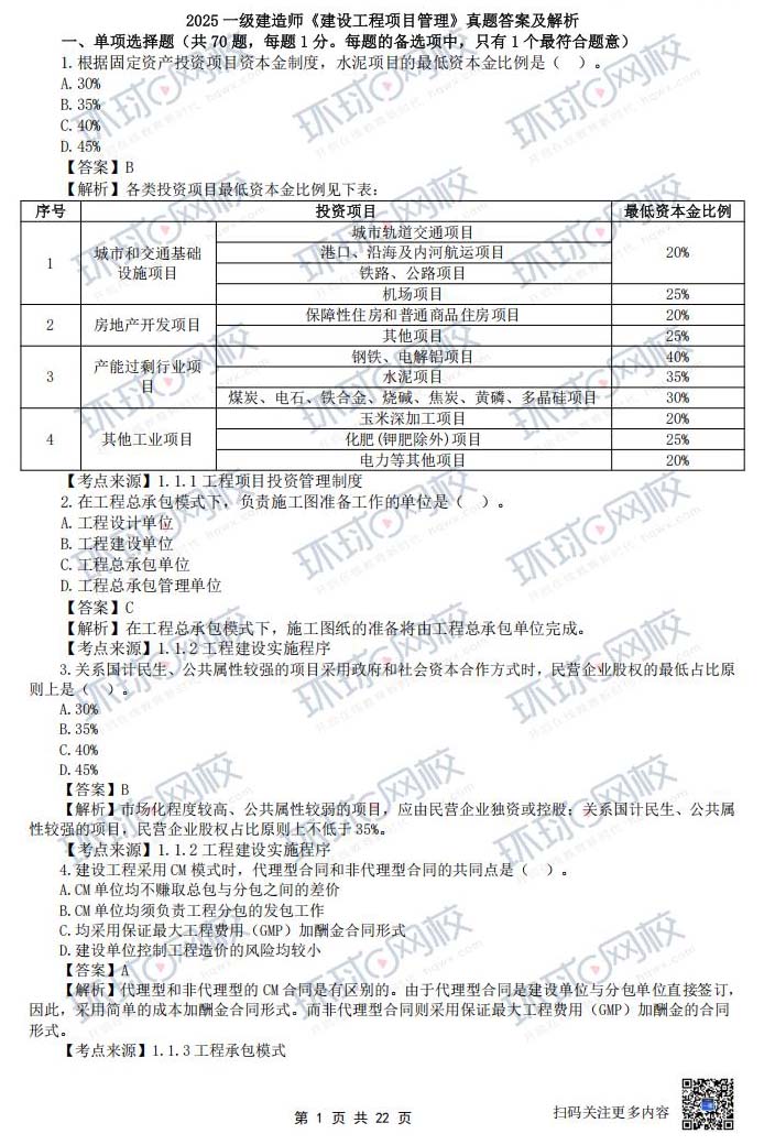 2025年一建【项目管理】真题及答案(全)
