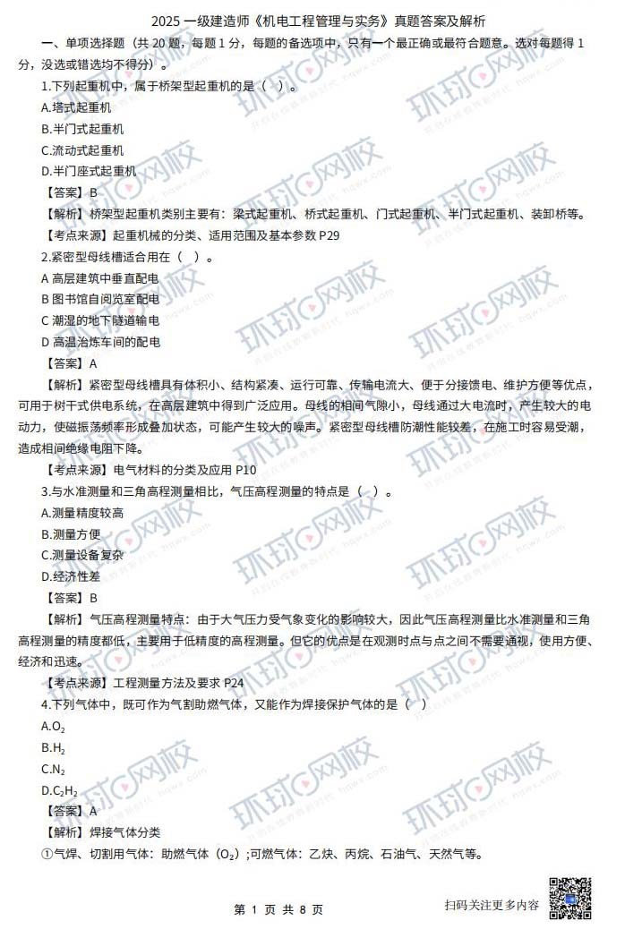 2025年一建【机电工程】真题及答案(全)