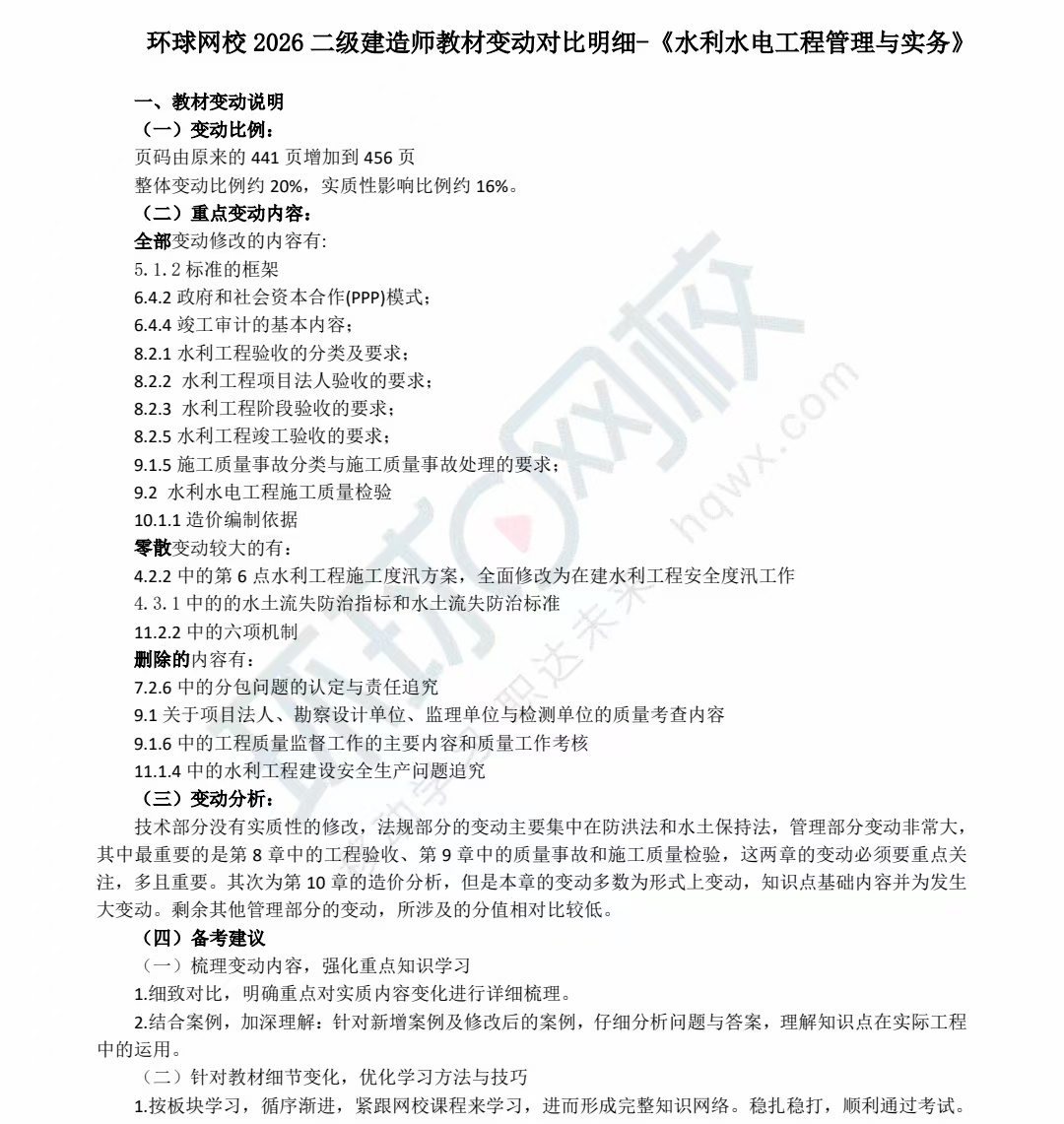 2026二建《水利水电》教材变动对比明细
