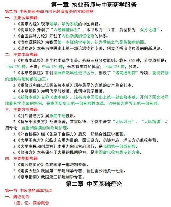 执业药师【中药综合】必背三色笔记