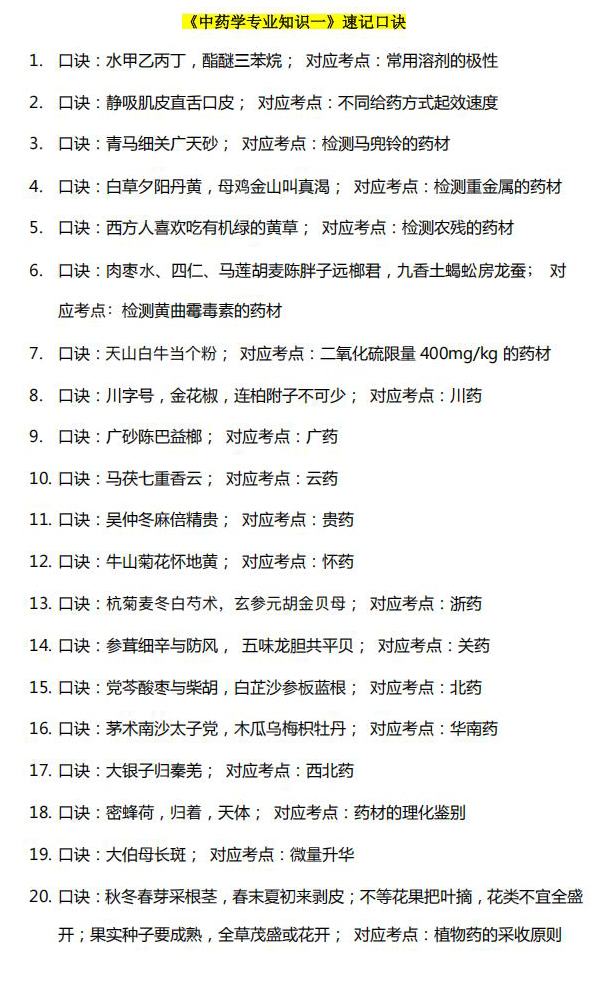 执业药师《中药学知识一》速记口诀