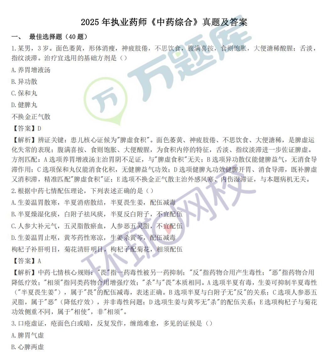 2025执业药师【中药综合】真题及答案(全)