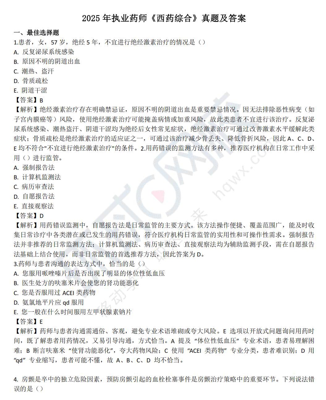 2025执业药师【西药综合】真题及答案(全)