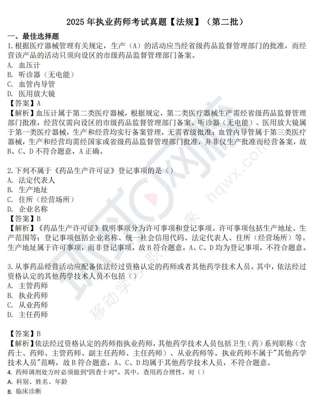2025年执业药师法规第二批真题及答案(全)