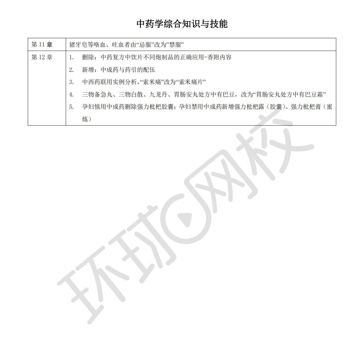 2026年执业药师《中药综》新旧教材变动
