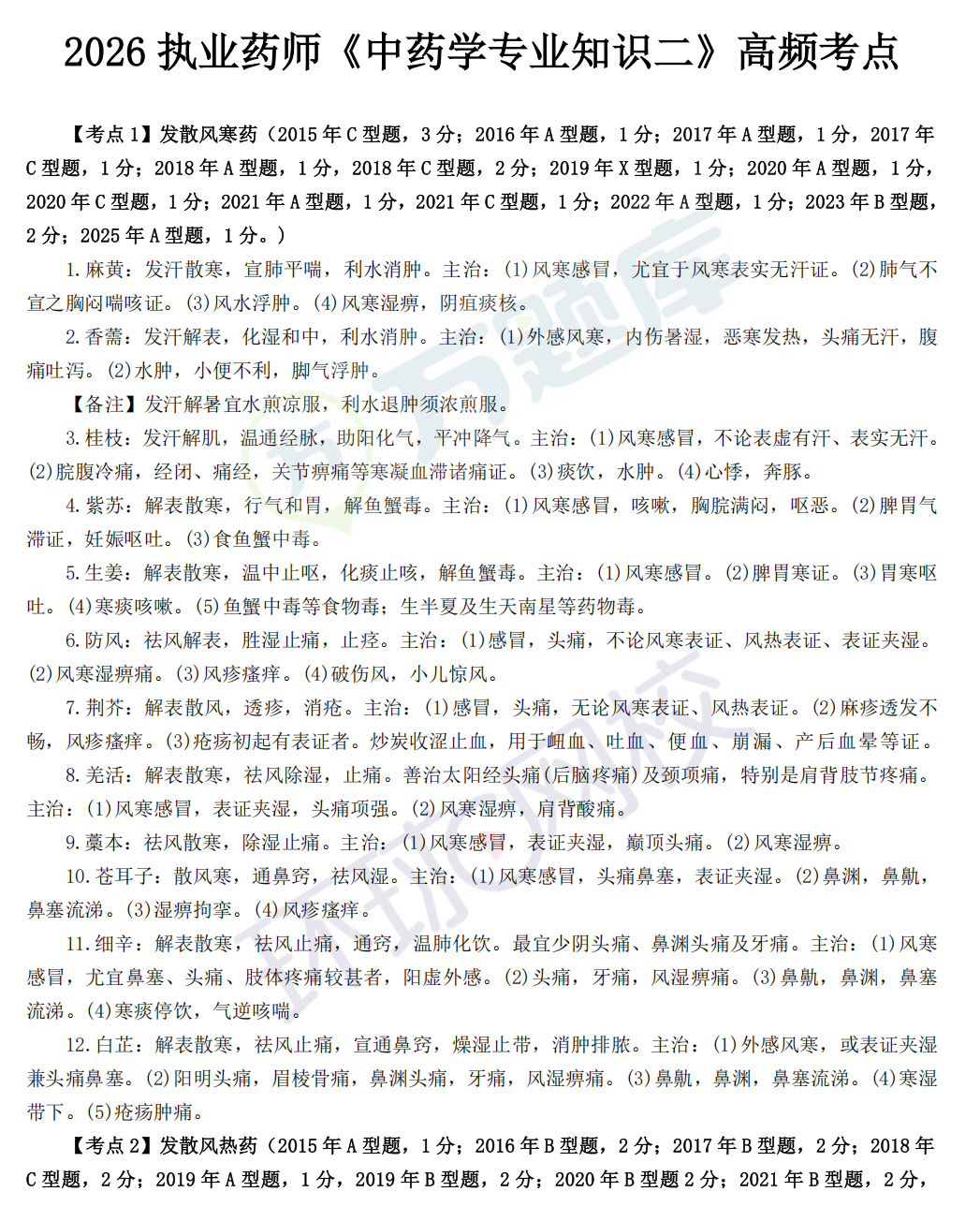 执业药师【中药二】必背三色笔记