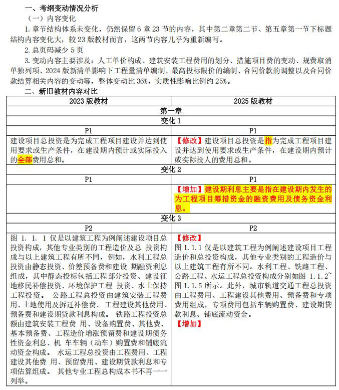 2025年一级造价师《工程计价》新教材变动