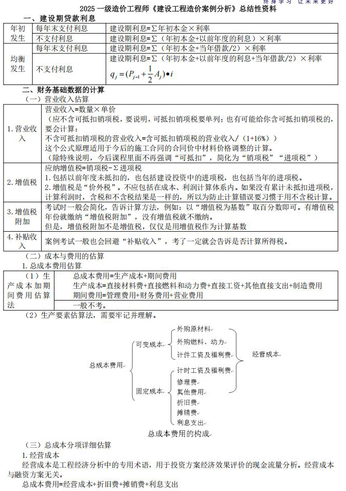 2026一级造价师《案例分析》总结性资料