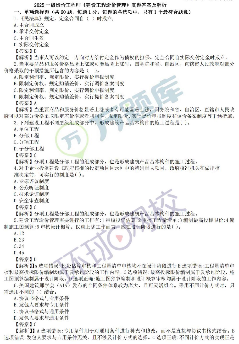 2025一级造价《造价管理》真题及答案(全)