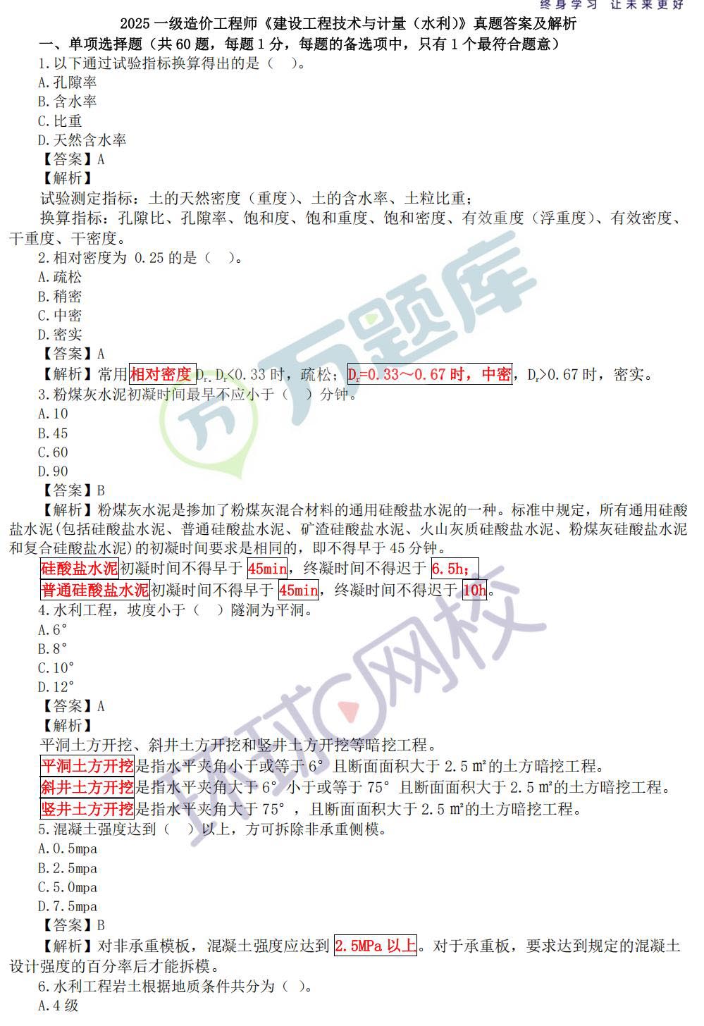 2025年一级造价师《水利计量》真题及答案
