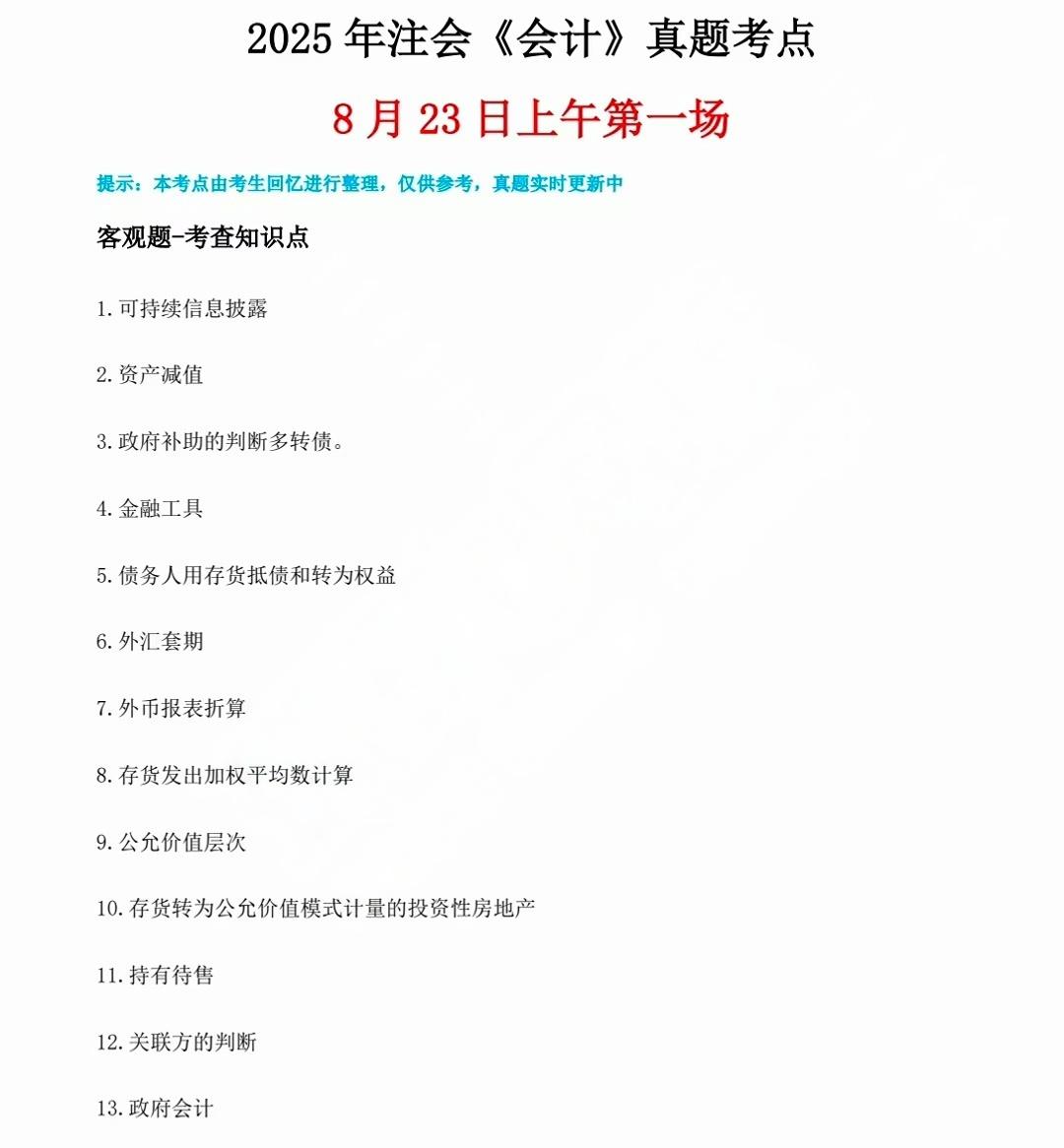 2025年注会《会计》真题考点(8月23日上午第一场)