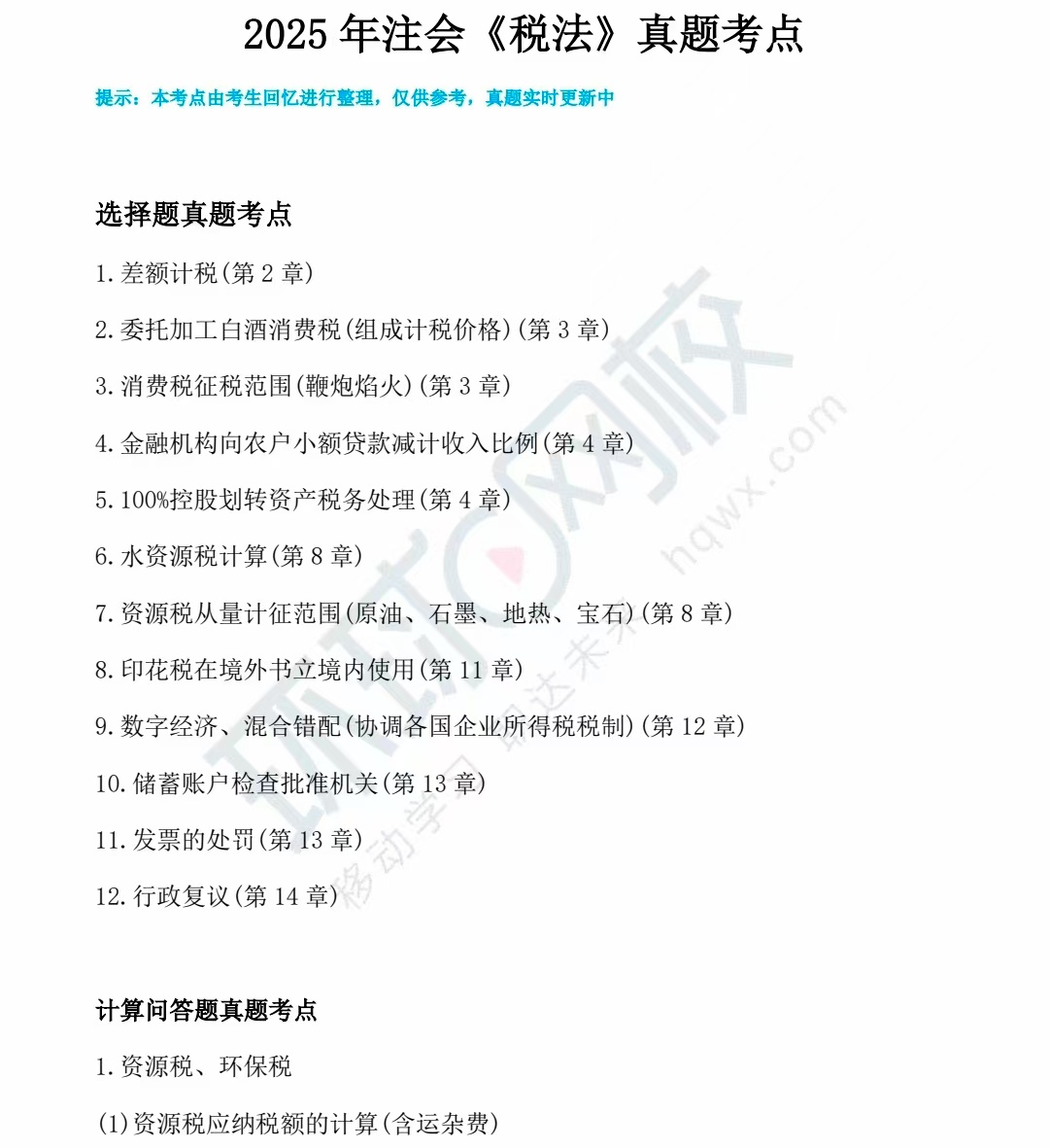2025年注会《税法》真题考点