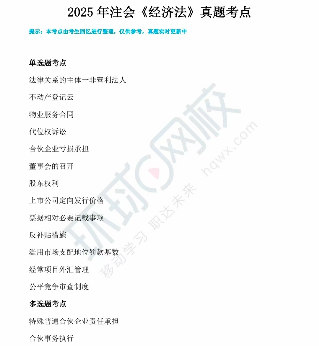 2025年注会《经济法》真题考点