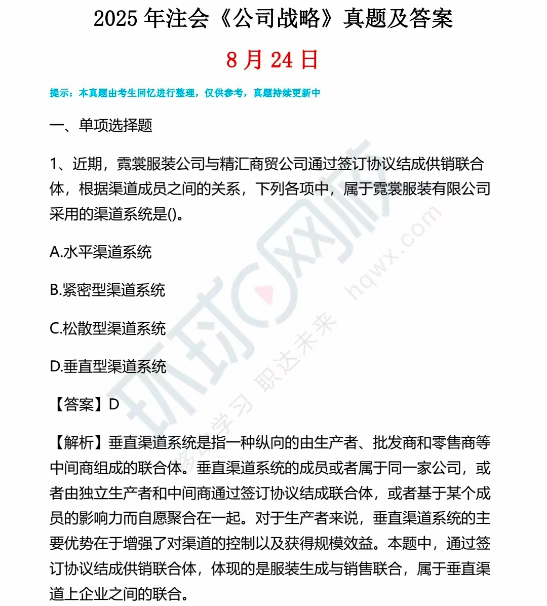 2023注会《战略》(8.26)真题及答案解析(更新中)