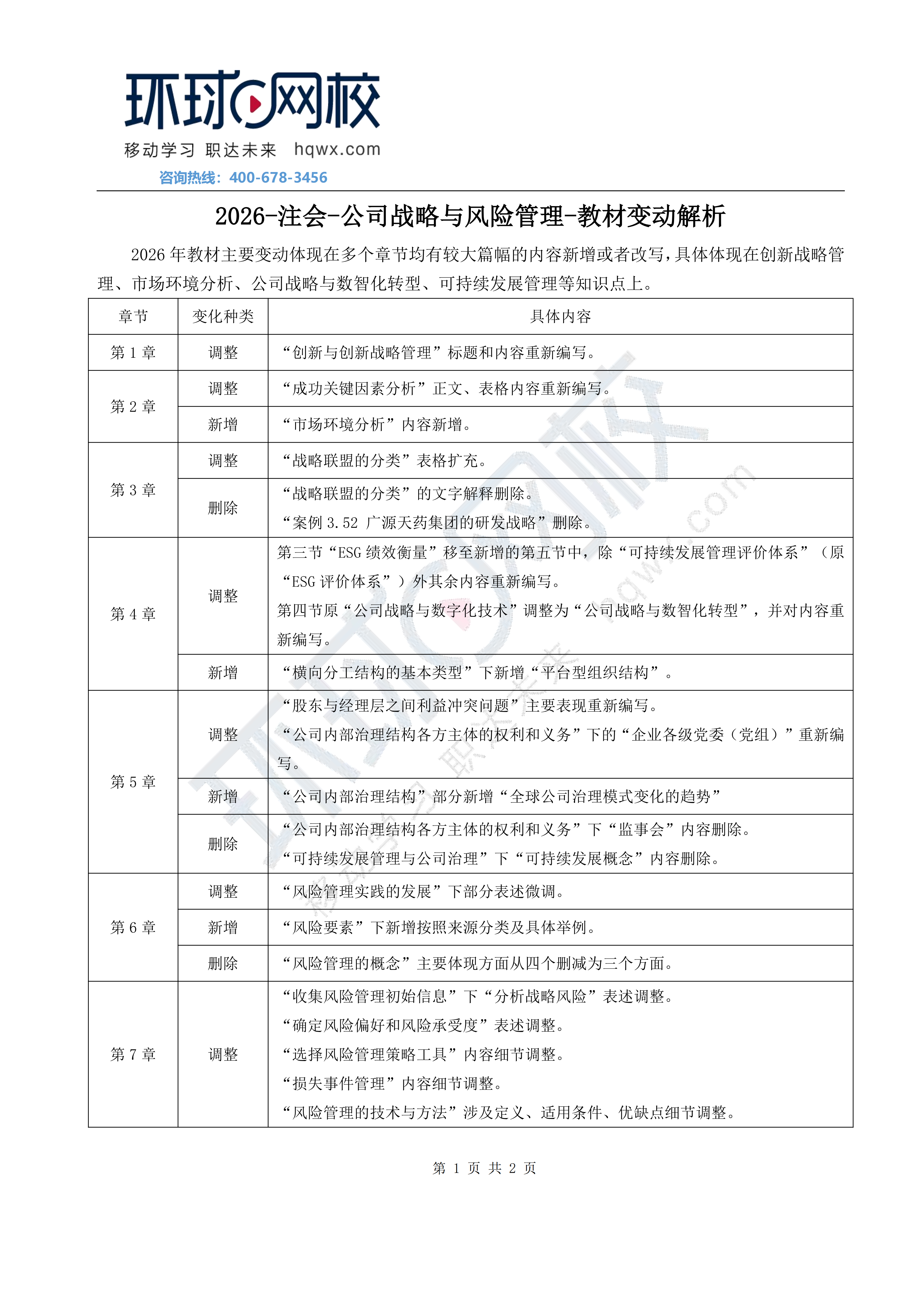 2026注会《公司战略与风险管理》教材变动解析