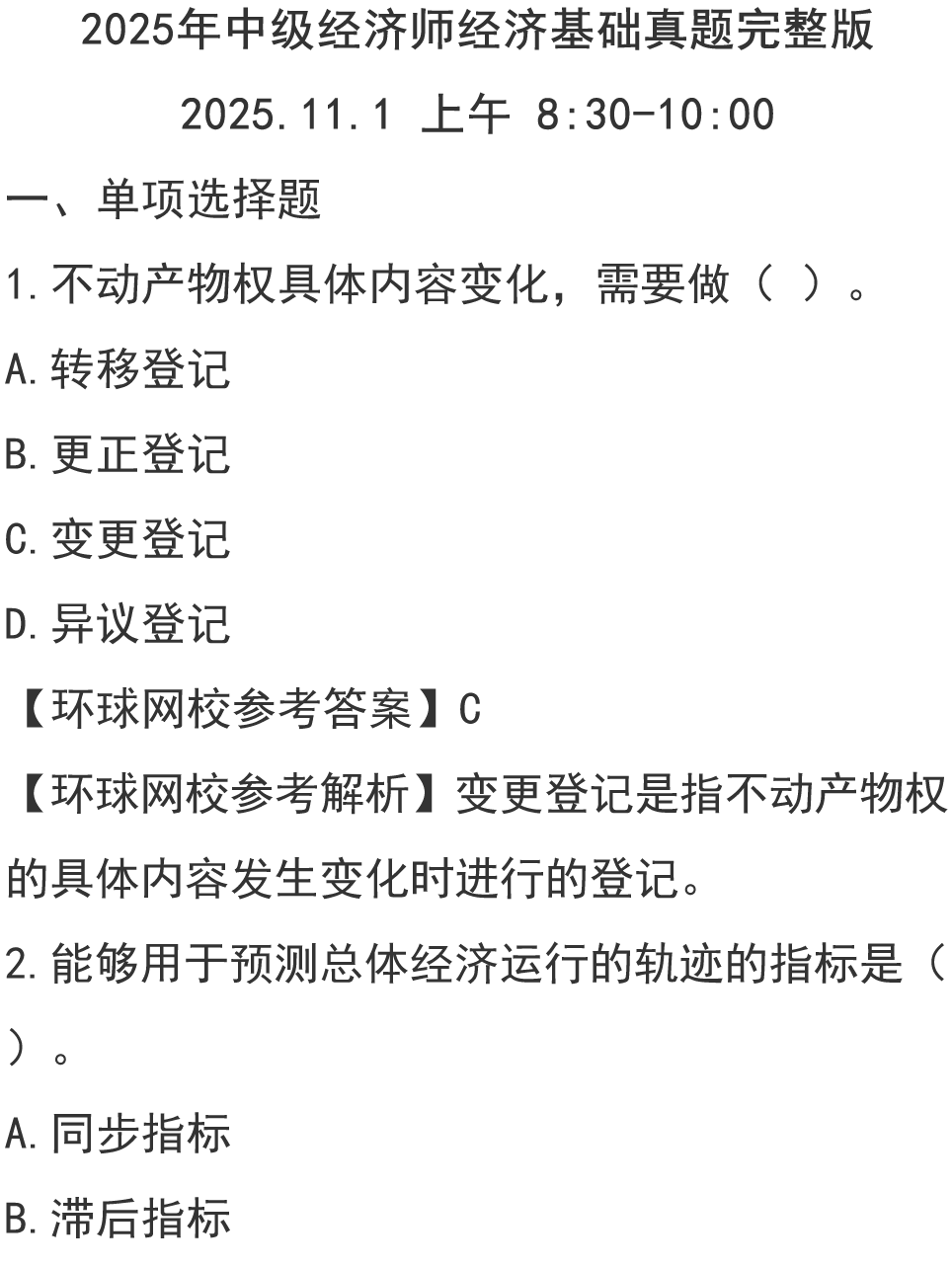 完整版2025中经《经济基础》真题答案11月2日下午