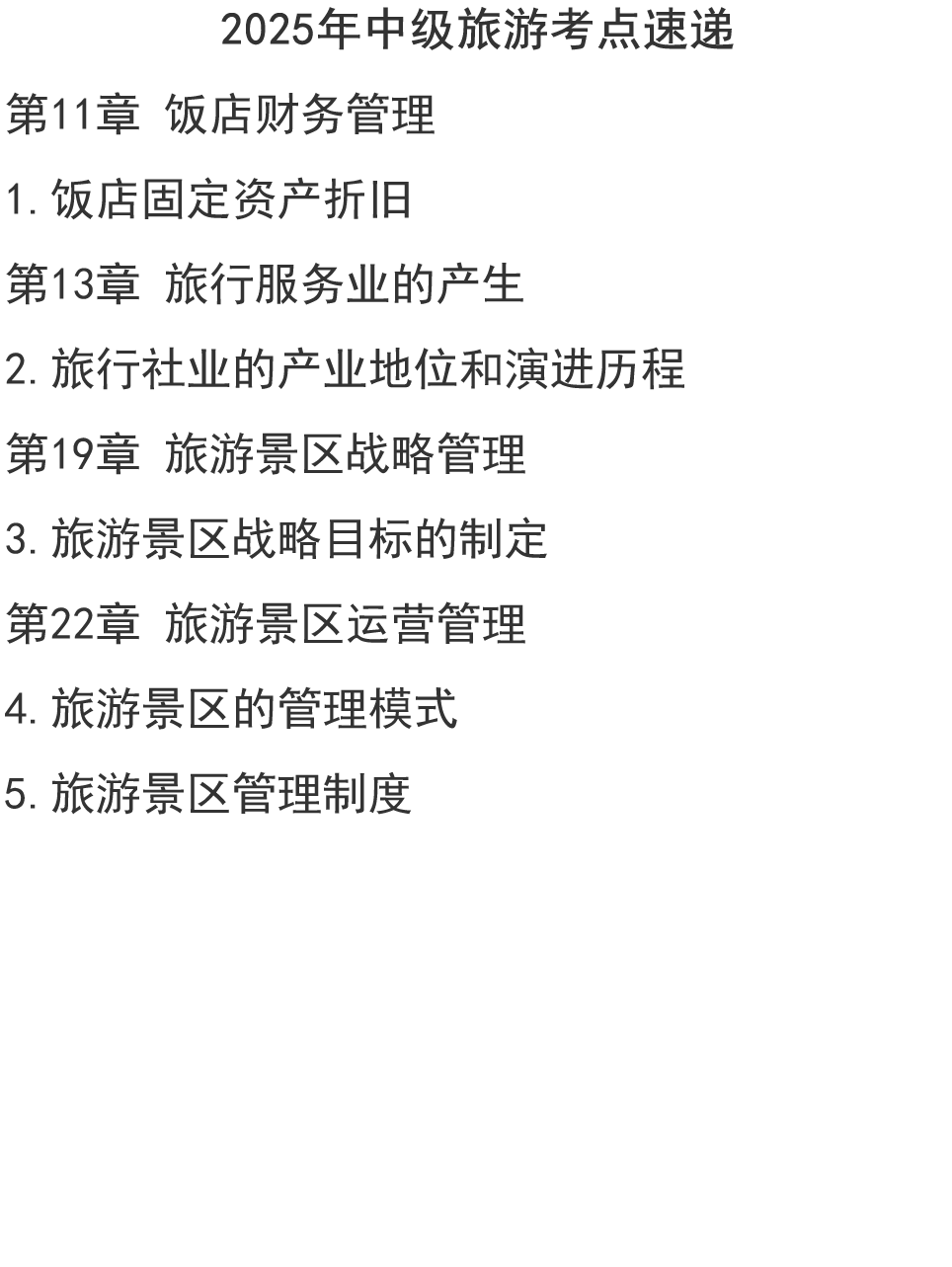 2025年中级旅游考点速递